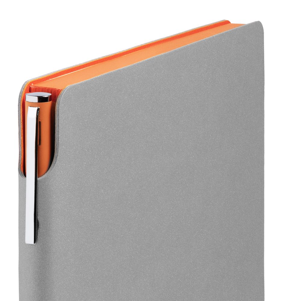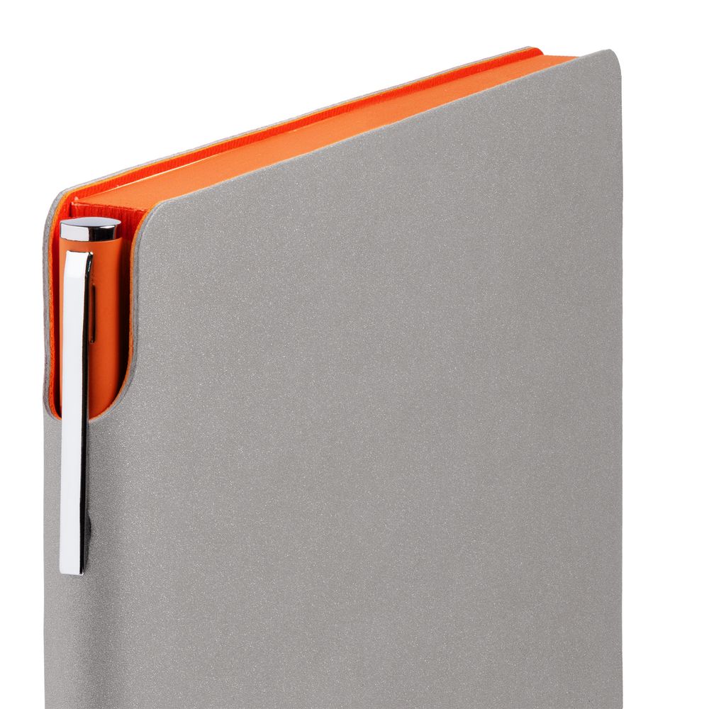 Гибкая обложка с местом под ручку выполнена из материала Velour Melange, серый СС и цветного Latte (внутренняя часть обложки)