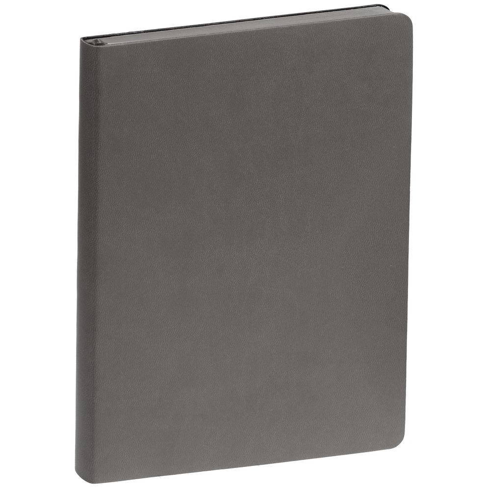 Ежедневник с гибкой обложкой, выполнен из материала Latte, серый, дополнен ляссе в цвет обложки.