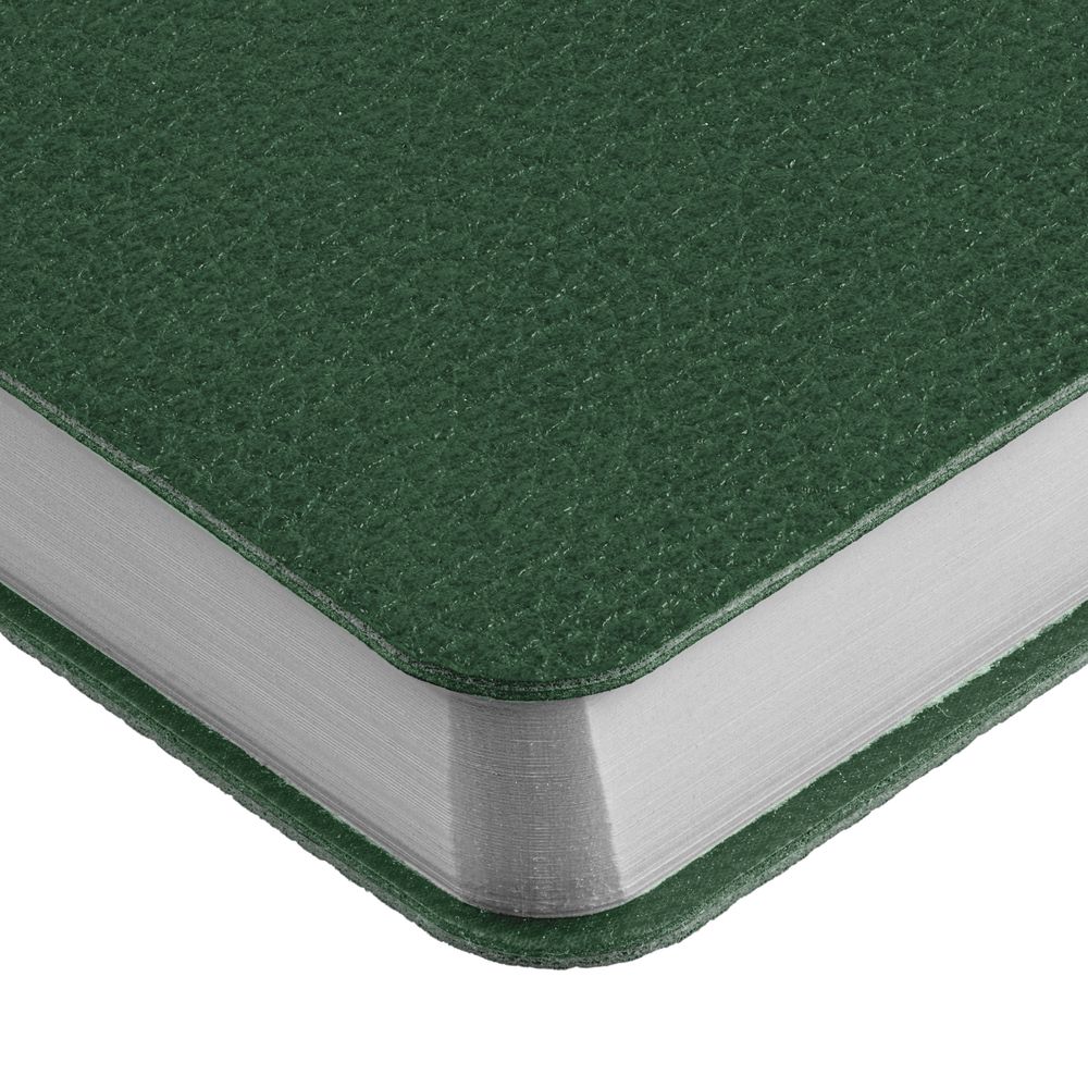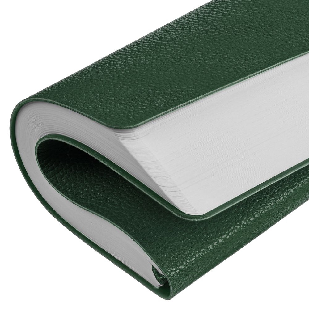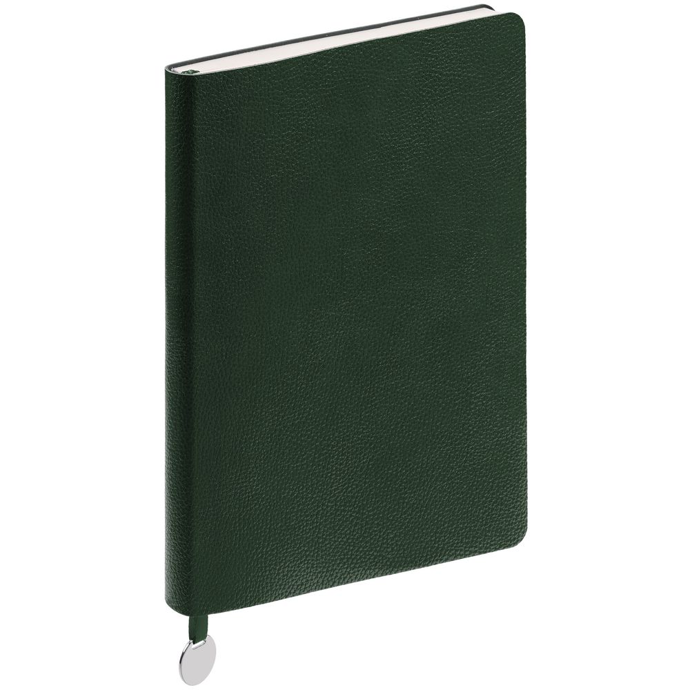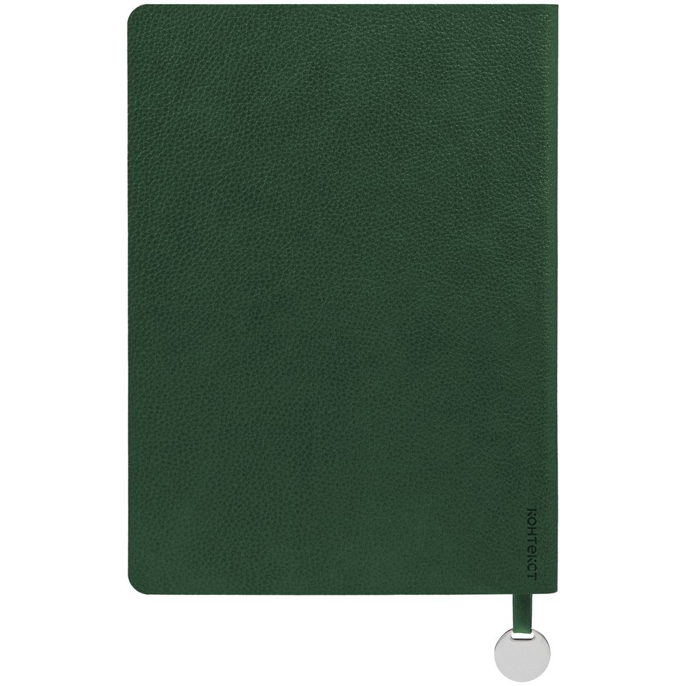 Ежедневник с твердой обложкой, выполнен из материала La Fite, зеленый, дополнен ляссе в цвет обложки с металлическим шильдом. Блок 985, без календарной сетки:
