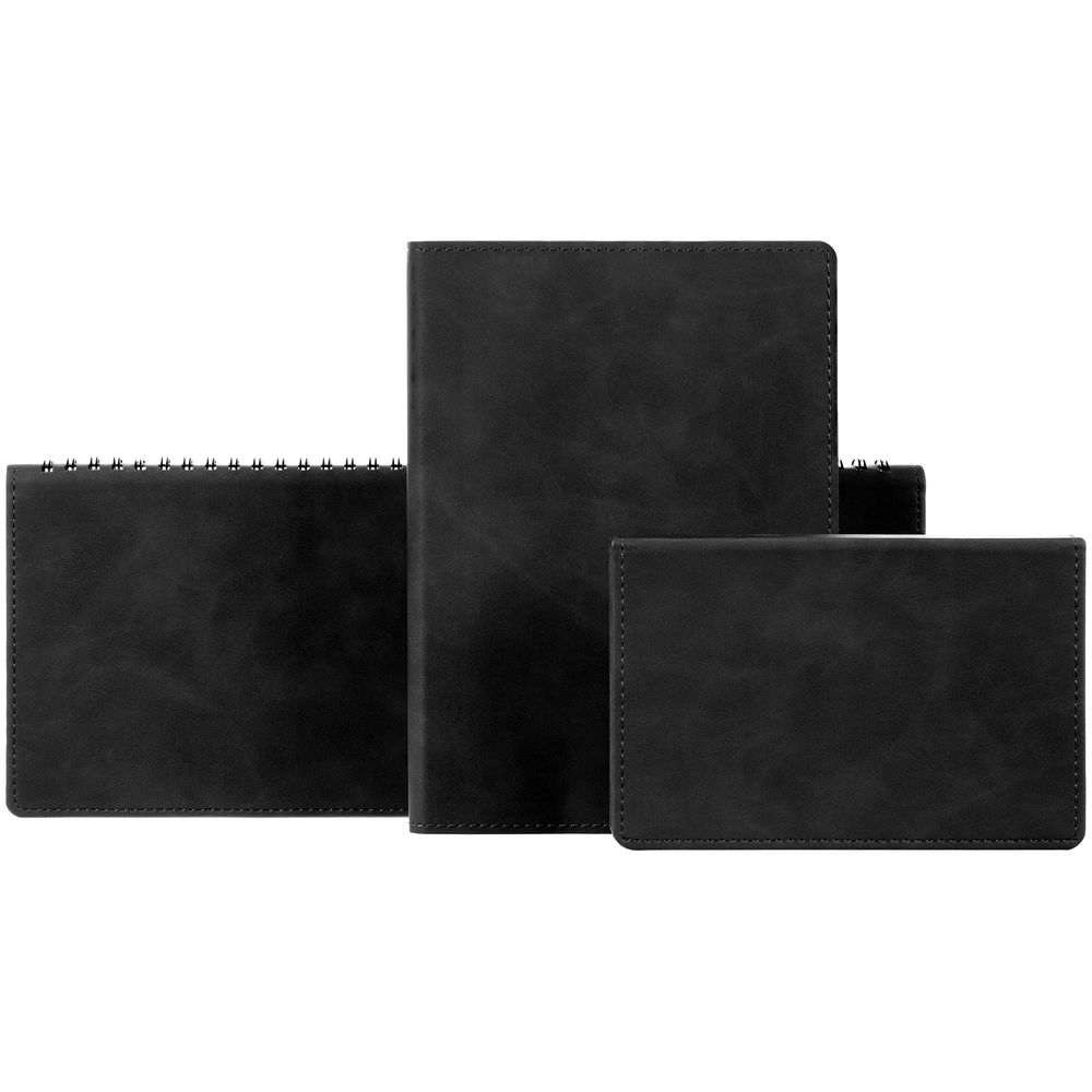 Ежедневник с гибкой обложкой, выполнен из материала Nubuck Touch, черный AA, дополнен ляссе в цвет обложки.