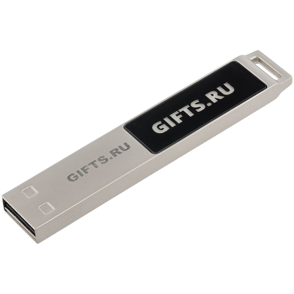 Флешка в тонком металлическом корпусе с пластиковой самоклеящейся шильдой в комплекте. Благодаря встроенной в корпус светодиодной матрице, логотип, выполненный на шильде методом лазерной гравировки, подсвечивается белым, красным или синим в зависимости от выбранной модели.