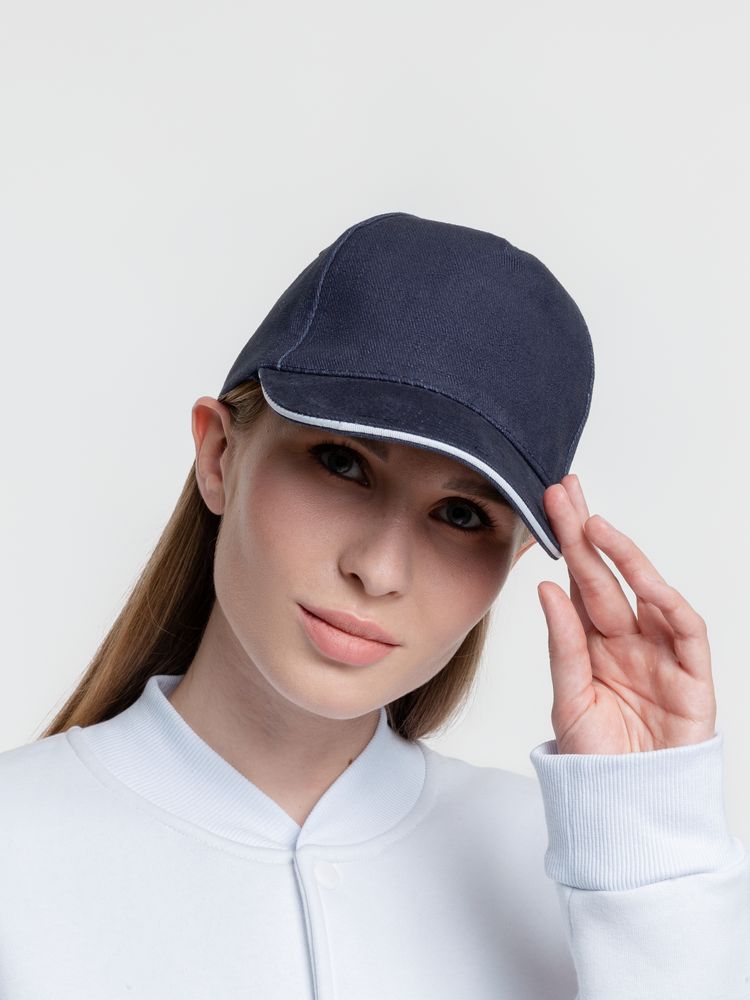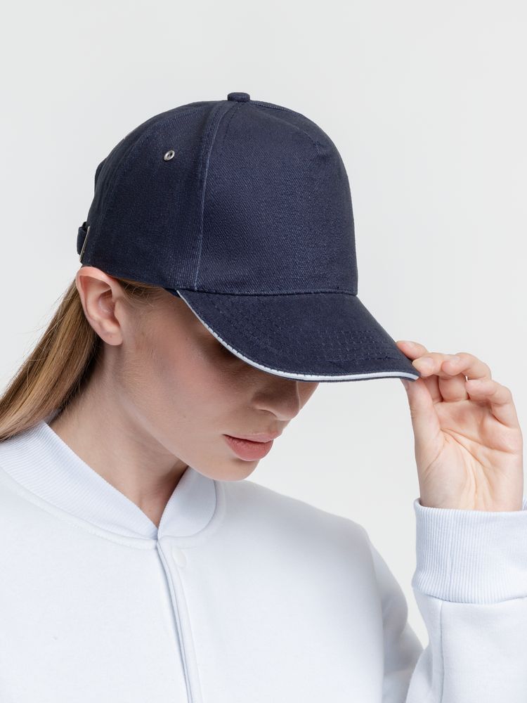Популярная модель с 5 клиньями без лобового шва выполнена из плотного хлопка. Козырек-сэндвич с контрастной вставкой. Регулируемая металлическая застежка и вентиляционные отверстия с люверсами обеспечивают оптимальную посадку и комфорт в носке.