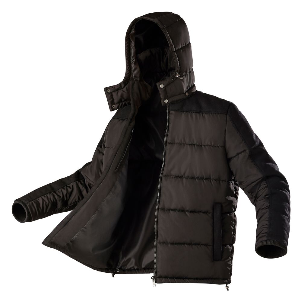 Материал: подкладка - полиэстер 100%, 210Т; набивка - полиэстер 100%, плотность 200 г/м²; кокетка и вставка на рукавах: 57% - шерсть, 34% - полиэстер, 5% - акрил, 4% - нейлон; полиуретановая пропитка; верх - полиэстер 100%