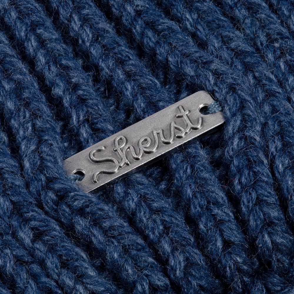 Металлический шильд с названием бренда расположен у заднего шва шапки. Это оставляет место спереди для пришива лейбла или шильдика с логотипом заказчика.