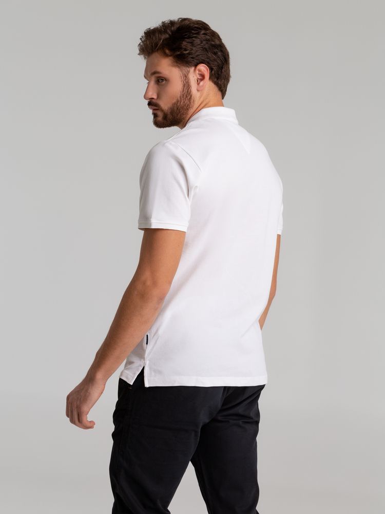 Классическая рубашка поло из гребенного хлопка с пуговицами в тон и боковыми разрезами по бокам.