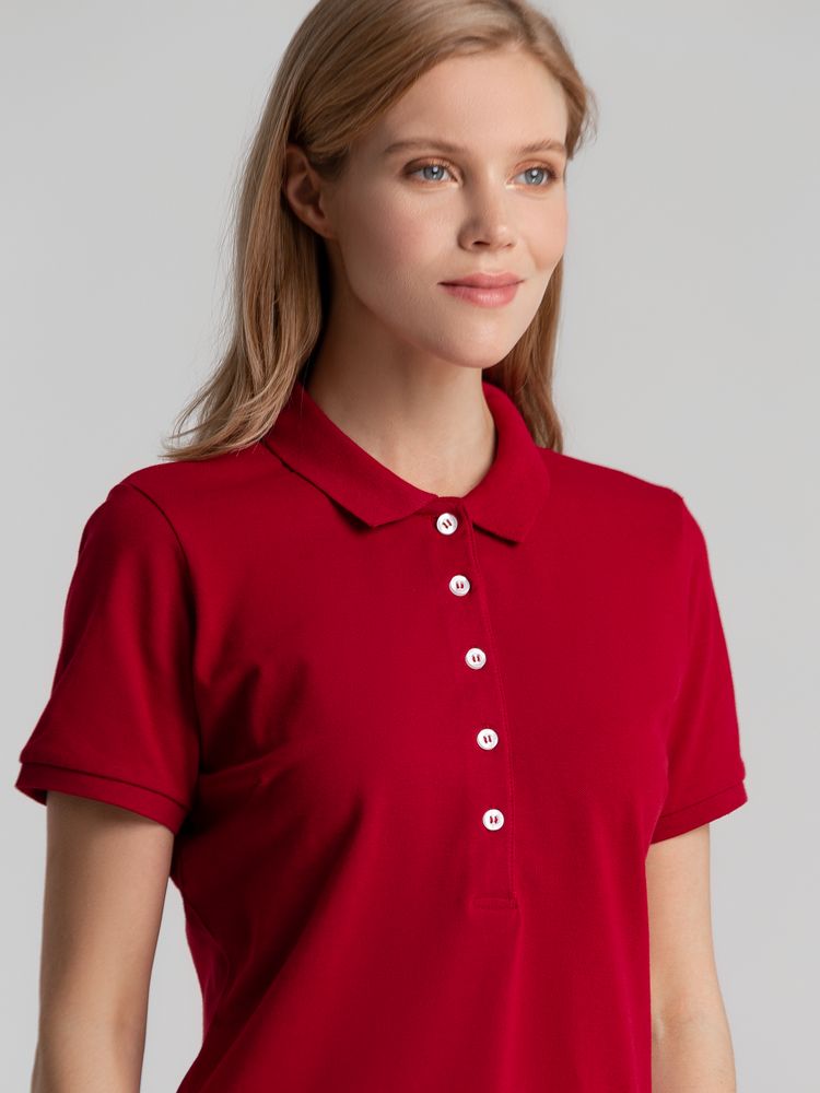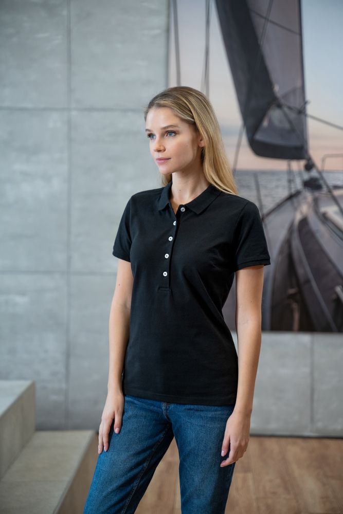 Приталенная женская рубашка поло из гребенного хлопка с разрезами по бокам. Застегивается на 5 пуговиц белого цвета. Ткань прошла предварительную усадку.