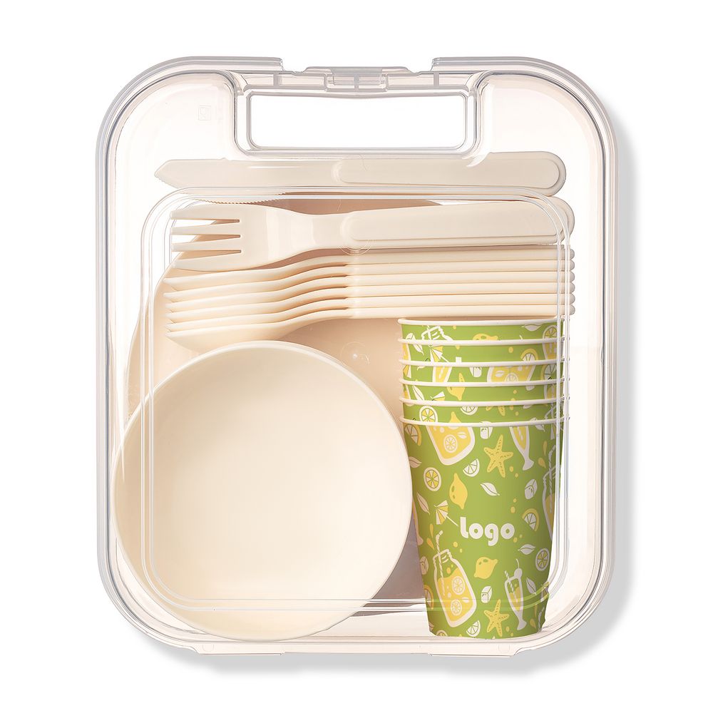 Набор Picnic на 6 персон позволит удобно устроиться на природе и насладиться пикником с классической сервировкой. Посуда упакована в удобный для переноски контейнер с ручкой, который раскрывается на 180° и превращается в двухсекционную миску для подачи. Столовые приборы скрепляются друг с другом с помощью фиксатора и не потеряются в процессе транспортировки.