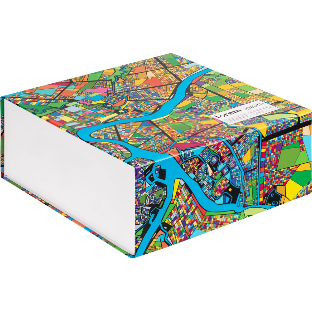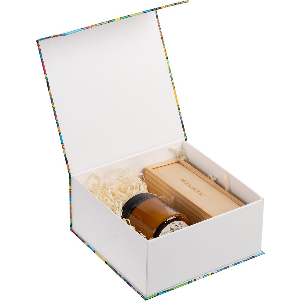 Коробка изготовлена из переплетного картона с крышкой на магните.