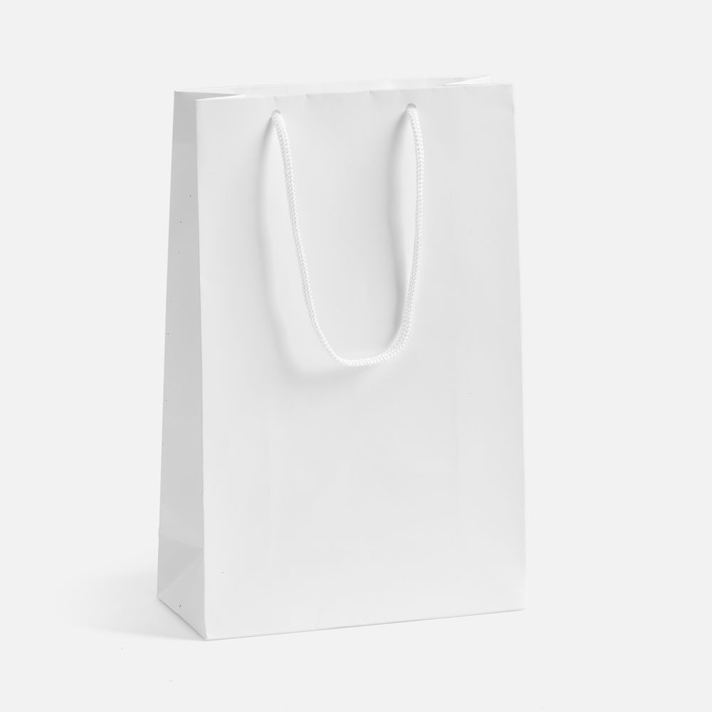 Пакет из плотной мелованной бумаги с матовой ламинацией.Выдерживает вес до 2 кг.