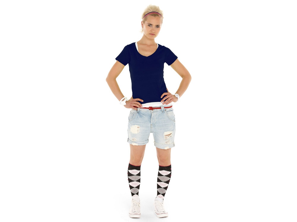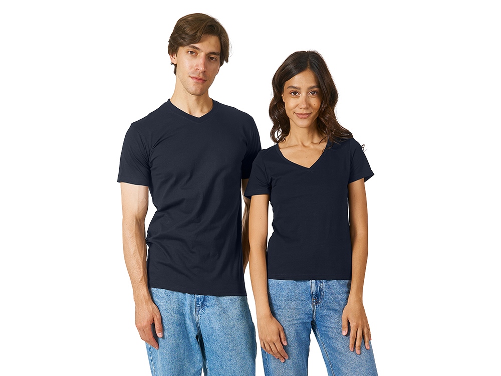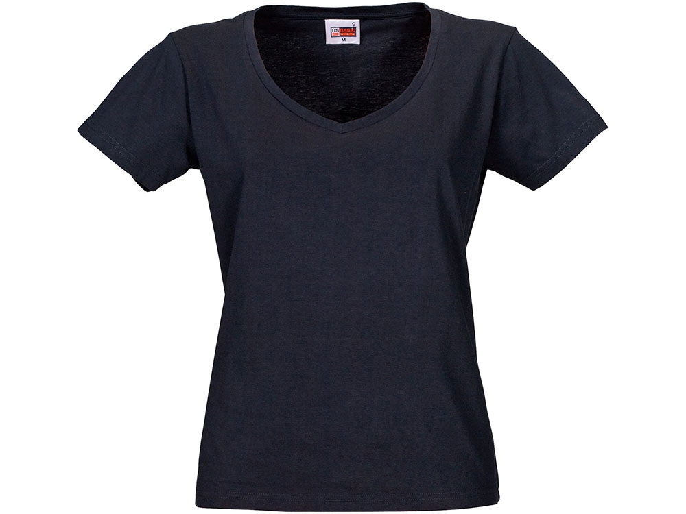 Женская футболка из натурального хлопка с элегантным V-образным вырезом. Материал отлично подходит для нанесения рекламной информации. Натуральная ткань не вызывает раздражения кожи. Трафаретная печать (1 цвет (цветные изделия)) на данный товар осуществляется бесплатно. Оплачивается только настройка оборудования в размере 8700 рублей на весь тираж.