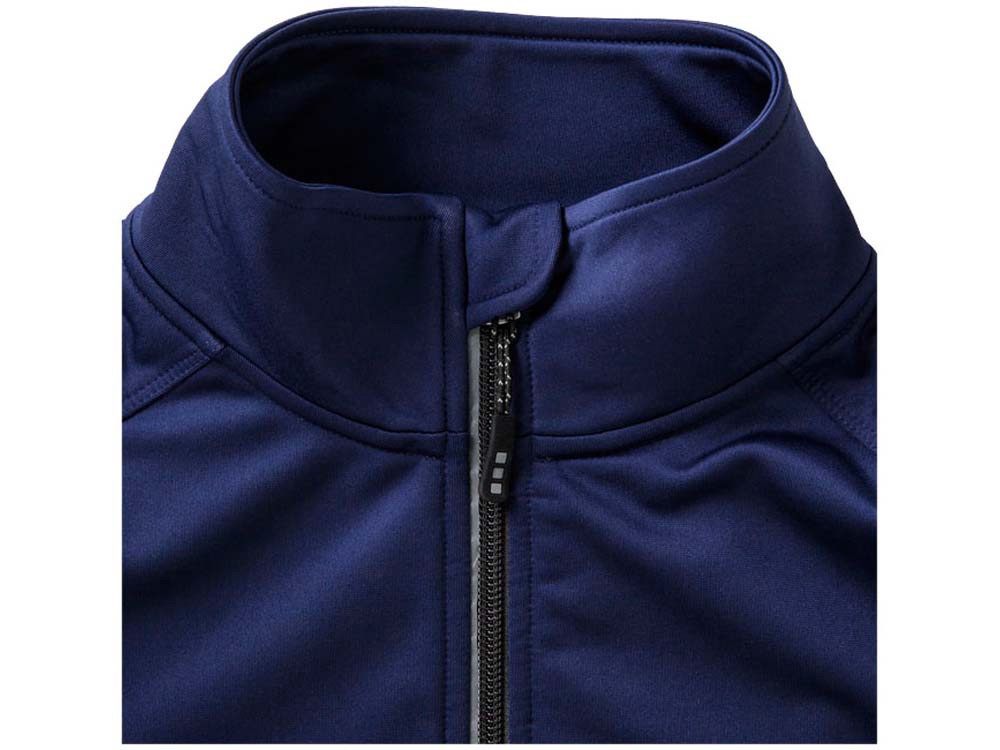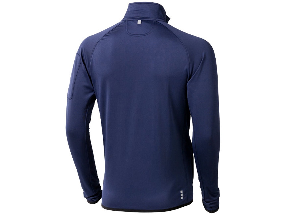 Флисовая куртка Mani с застежкой-молнией на всю длину. Стандартный покрой. Отверстие для большого пальца. Резинка на манжетах и внизу куртки. Внутренний противоветровой клапан и защита подбородка. Карман для электроники внутри правого кармана. Отражающие детали. Карманы на рукаве и для рук на молнии. Атласная лента внутри горловины. Эластичность в четырех направлениях. Контрастный цвет полумесяца. Однослойная джерси, 91% полиэстер и 9% эластан. Чесаная внутренняя сторона. 245 г/м². Термотрансфер (1 цвет (цветные изделия)) на данный товар осуществляется бесплатно. Оплачивается только настройка оборудования в размере 9200 рублей на весь тираж.