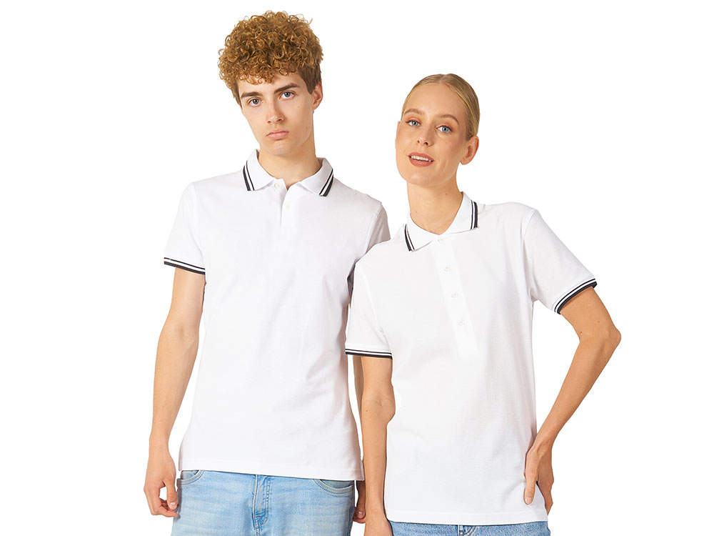 Рубашка-поло Erie с окантовкой. Воротник и манжеты резинка 1х1. Мужская модель с двумя пуговицами, женская - 4 пуговицы в тон изделия. Обшивка внутри воротника. Женская модель с разрезами по бокам. Женская модель приталена. Пике, 100% чесаный хлопок. Плотность 180 г/м2. Трафаретная печать (1 цвет (белые изделия)) на данный товар осуществляется бесплатно. Оплачивается только настройка оборудования в размере 5300 рублей на весь тираж.