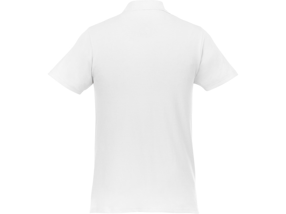 Мужское поло Helios с коротким рукавом. Отрезной-отрывной ярлык для комфорта. Воротник гладкой вязкой в рубчик. Планка с двумя пуговицами. Двойная строчка на воротнике и внизу изделия. Пуговицы в цвет изделия. Полоска на горловине в контрастном цвете. Трикотаж Piqué, 100 % хлопок. 180 г/м². Трафаретная печать (1 цвет (белые изделия)) на данный товар осуществляется бесплатно. Оплачивается только настройка оборудования в размере 5300 рублей на весь тираж.