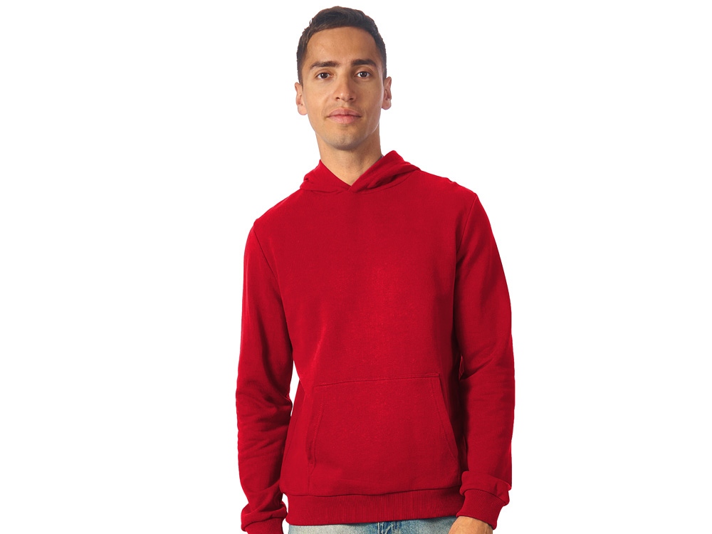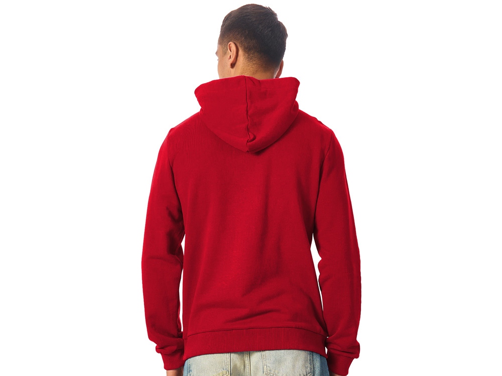 Толстовка с капюшоном (худи) из плотного хлопкового футера. В капюшоне подкладка в тон, а горловина спинки дополнительно укреплена тесьмой с выделкой «елочка». Капюшон без шнурков – ничего не отвлекает от вашего брендирования. Манжеты и низ изделия отделаны рибом 2х2. Глубокий комфортный карман кенгуру на полочке. Полотно из утяжеленного хлопкового футера внутри с петельками без начеса.