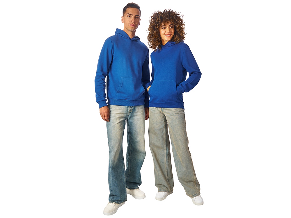 Толстовка с капюшоном (худи) из плотного хлопкового футера. В капюшоне подкладка в тон, а горловина спинки дополнительно укреплена тесьмой с выделкой «елочка». Капюшон без шнурков – ничего не отвлекает от вашего брендирования. Манжеты и низ изделия отделаны рибом 2х2. Глубокий комфортный карман кенгуру на полочке. Полотно из утяжеленного хлопкового футера внутри с петельками без начеса.