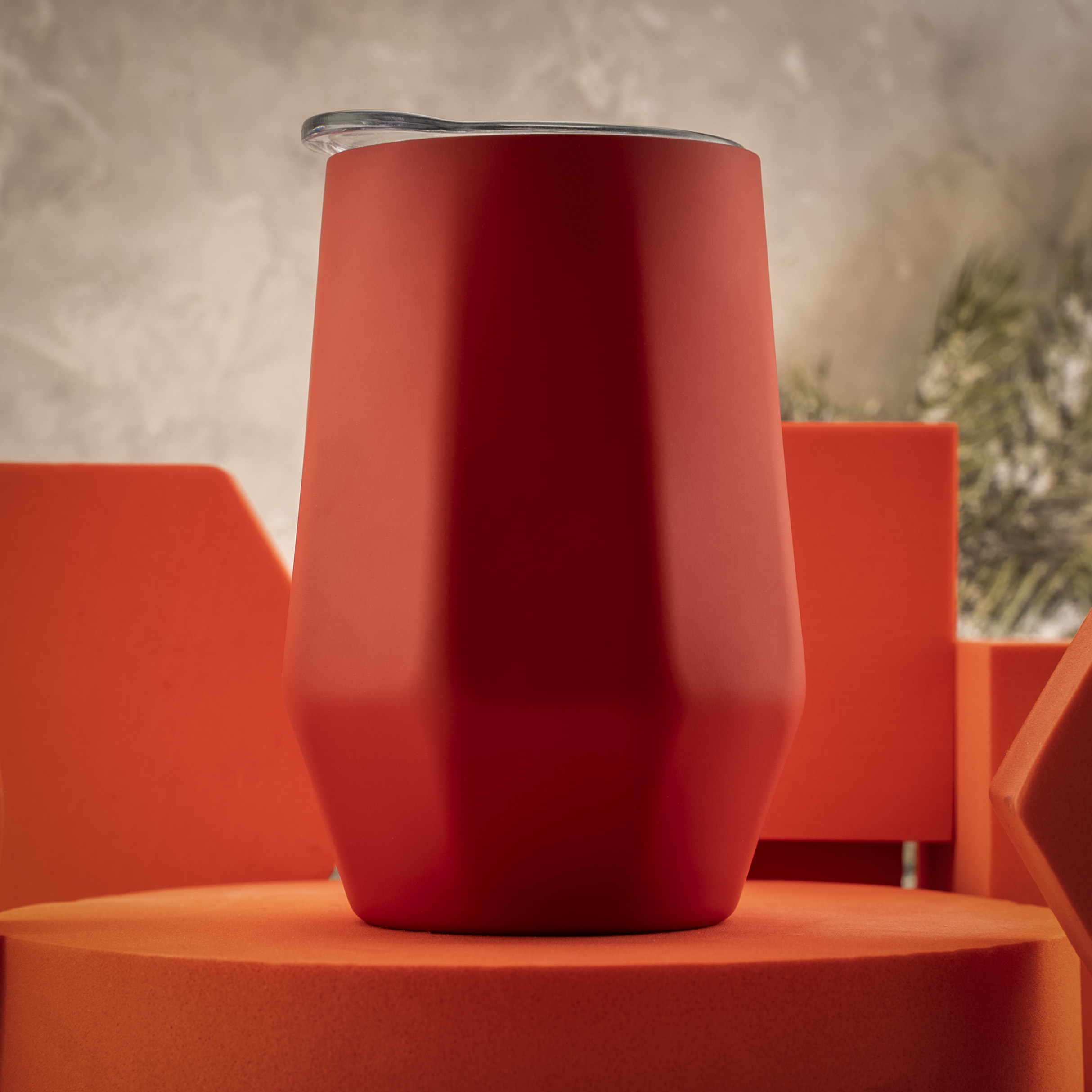 Характерная форма с расширяющейся нижней частью придает коферу оригинальность. Благодаря этой форме, кофер можно использовать для любых напитков: вода, чай, кофе, вино, коктейли - наливайте в кофер все, что захотите, напиток надолго сохранит свою температуру и вкус.